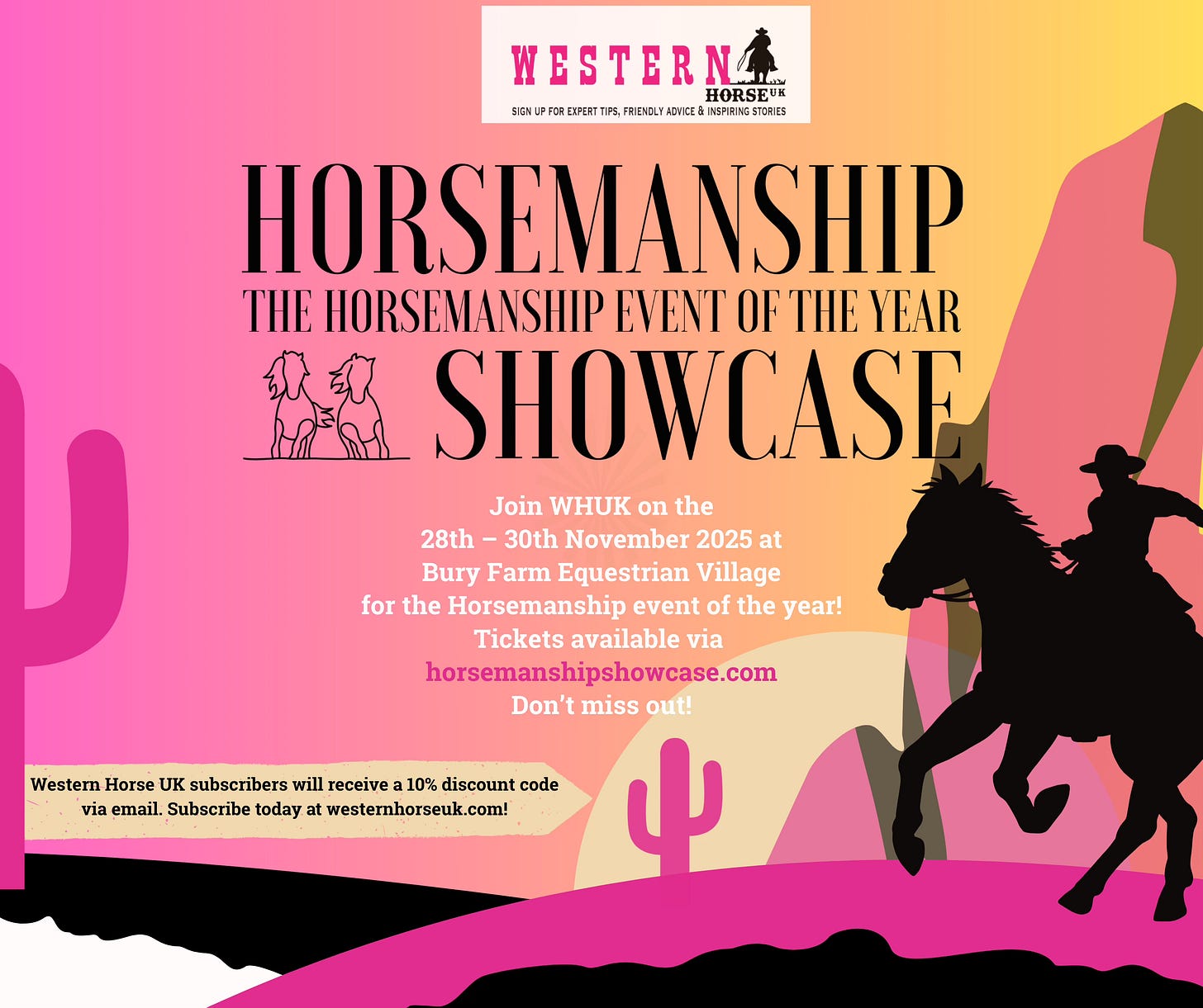 We’re excited to share something special for our community! Horsemanship Showcase 2025—the UK’s premier equestrian event—is happening 28th–30th November 2025 at Bury Farm Equestrian Village, Leighton Buzzard. As a Western Horse UK subscriber, you get 10% off all ticket types with the code: WHUK10%OFF.
