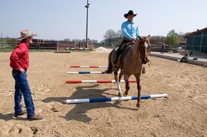 One way to test yourself and your horse’s lope and collection is to move your multiple poles to a spacing of seven feet. If your horse tackles the obstacle better you know you have to improve your basic lope. There are lots of ways to do this but in essence, you should try to get your horse to rock back and collect more. Try some short striding exercises where you lengthen the stride for a number of paces and then aim for a few short strides - the shorter the better. Remember to slowly increase the number of short strides in a set distance in your arena - don’t expect too much from your horse at first. He will have to coordinate his feet, understand what you want and build up the muscles and flexibility to do as you ask. Don’t forget to reward your horse with a release in pressure or a short pause in training if he makes an effort for you as a good lope takes a lot of power and energy for the horse to perform.